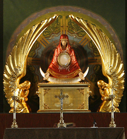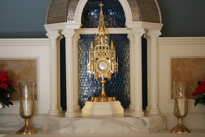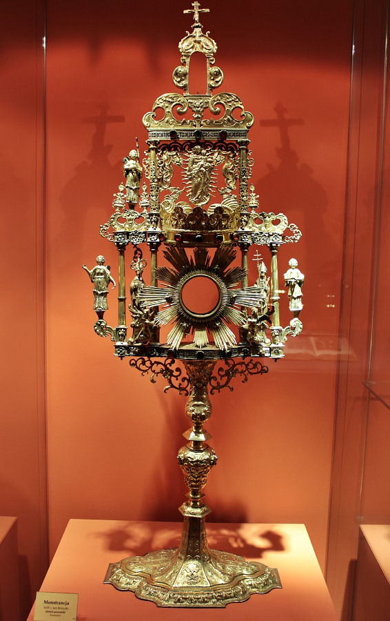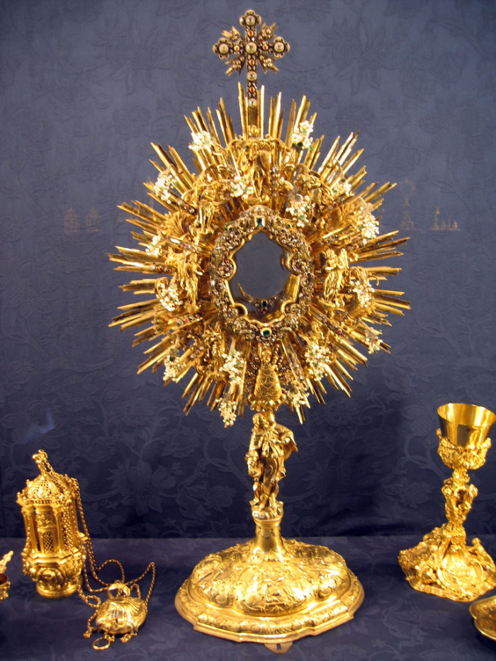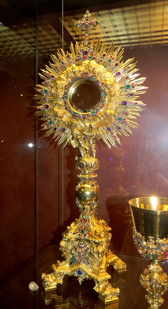O objeto com o qual a Eucaristia é exibida é chamado de ostensório ou custódia. Uma vez que é usado para exibir o próprio Jesus, os ostensórios geralmente são belos.