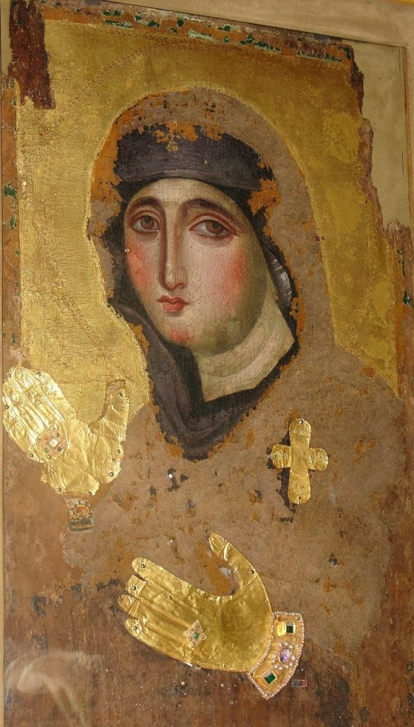 Esta imagem pode ser encontrada no Mosteiro de Santa Catarina, perto do Monte Sinai e é datada do século VI. Em torno de Maria e Jesus estão São Teodoro de Amásia, São Jorge, e dois anjos. Observe também a mão na parte superior da imagem (Deus Pai?).