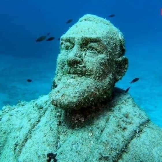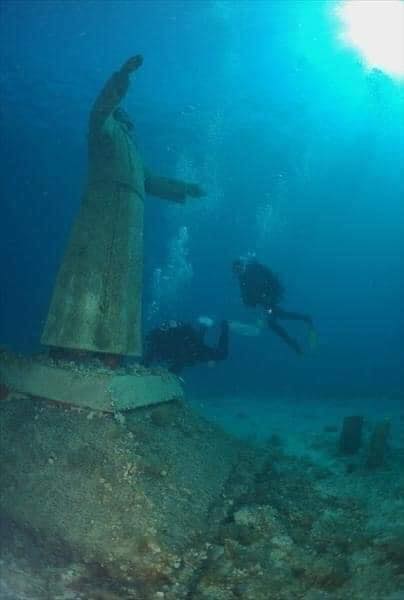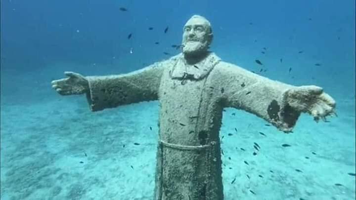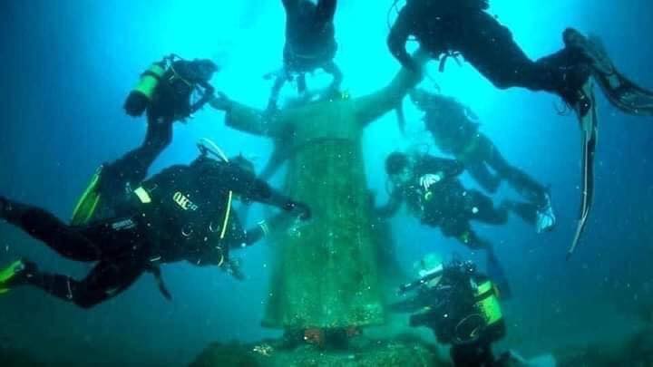 A bela imagem foi feita pelo escultor Mimmo Norcia de Foggia, tem 3 metros de altura e está localizada a uma profundidade de quatorze metros próximo à Ilha de Capraia, na Itália.