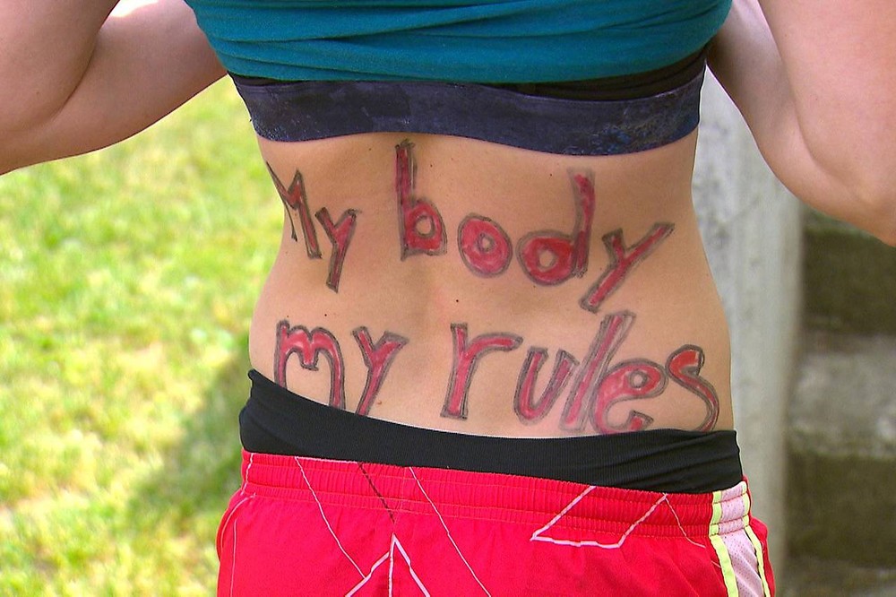 As jogadoras levantaram a blusa e em suas barrigas havia desenhos de ovários e mensagens pró-aborto. Ao mesmo tempo, trocaram as bandeirinhas do escanteio com as cores do arco-íris, da mesma forma que tinha no muro escrito nome do time. A torcida começou a levantar faixas e distribuir folhetos pró-aborto aos jornalistas.