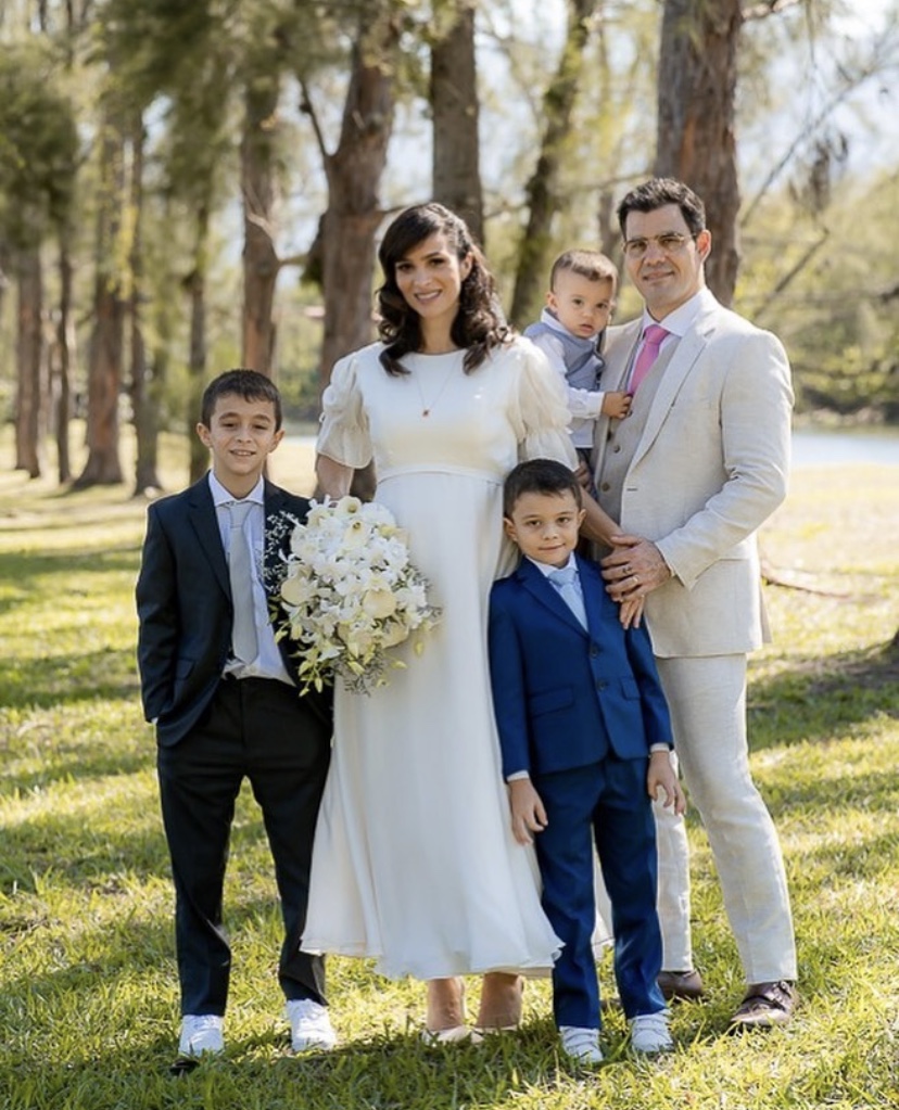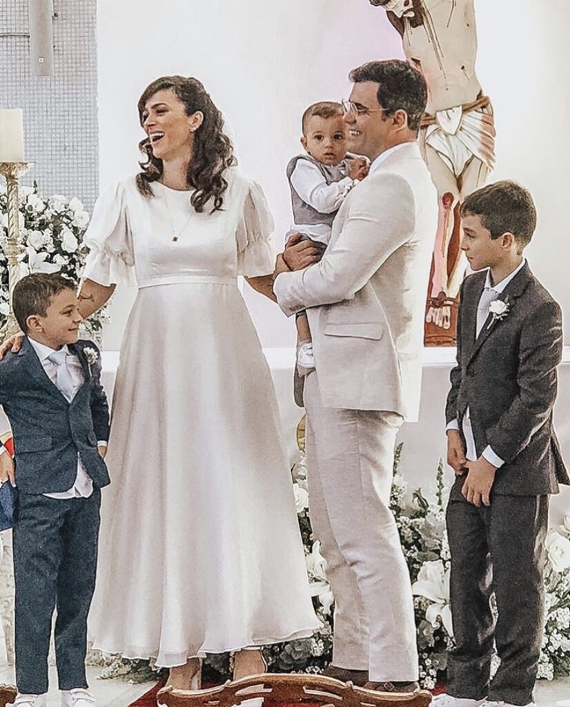 E completou: “Fizemos uma cerimônia tripla: Batismo do Vicente e Inácio, Primeira Comunhão (minha e deles) e Matrimônio. Foi o dia mais significativo da nossa vida enquanto família, entregando tudo o que somos e temos nas mãos daquele a quem tudo devemos: Deus.
