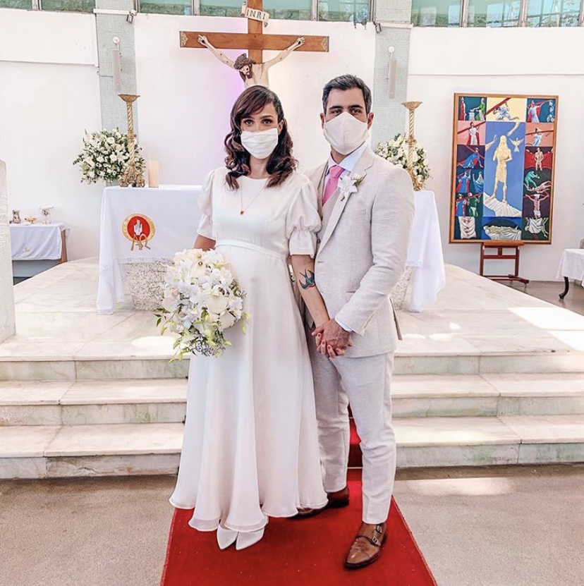 A cerimônia estava para acontecer há algum tempo, mas precisou ser adiada por causa da pandemia do coronavírus. A festa acabou sendo mais discreta e com poucos convidados, mas o casal não abriu mão do mais importante: a benção da Igreja.
