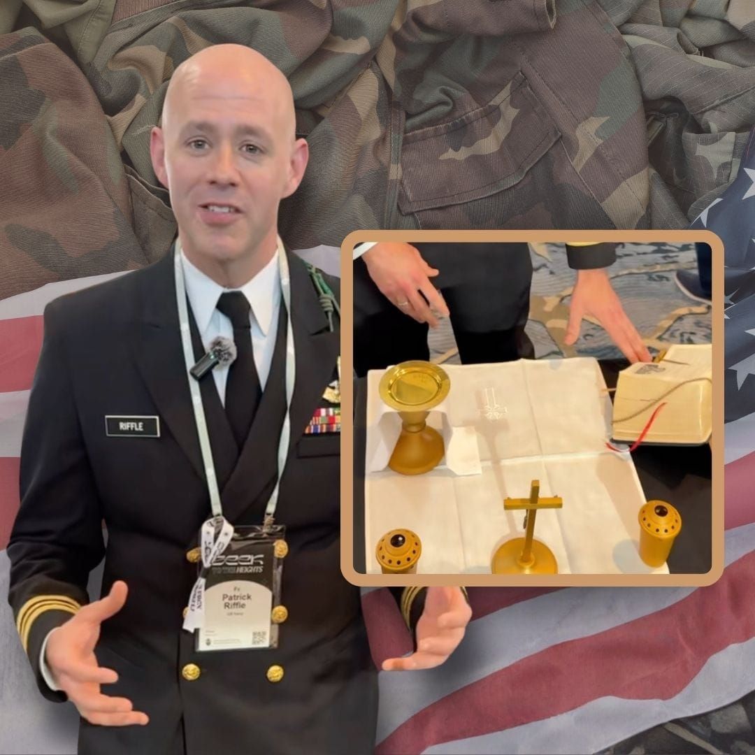 “No kit, temos tudo o que é necessário para a Missa: um missal pequeno, o suporte, a patena, um cálice pequeno, todos os corporais e purificadores que usamos. E ainda: velas especiais com proteção contra o vento, para que não se apaguem facilmente.”