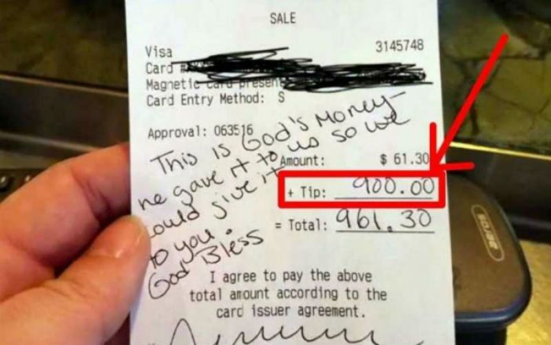 Um cliente em um restaurante deu um inesperado presente de Natal a uma garçonete no Phoenix, Estados Unidos: 900 dólares de gorjeta. “Este dinheiro é de Deus”, podemos ler em um dos lados do comprovante de pagamento, “Ele me deu para que eu desse para você. Deus te abençoe. “Eu...