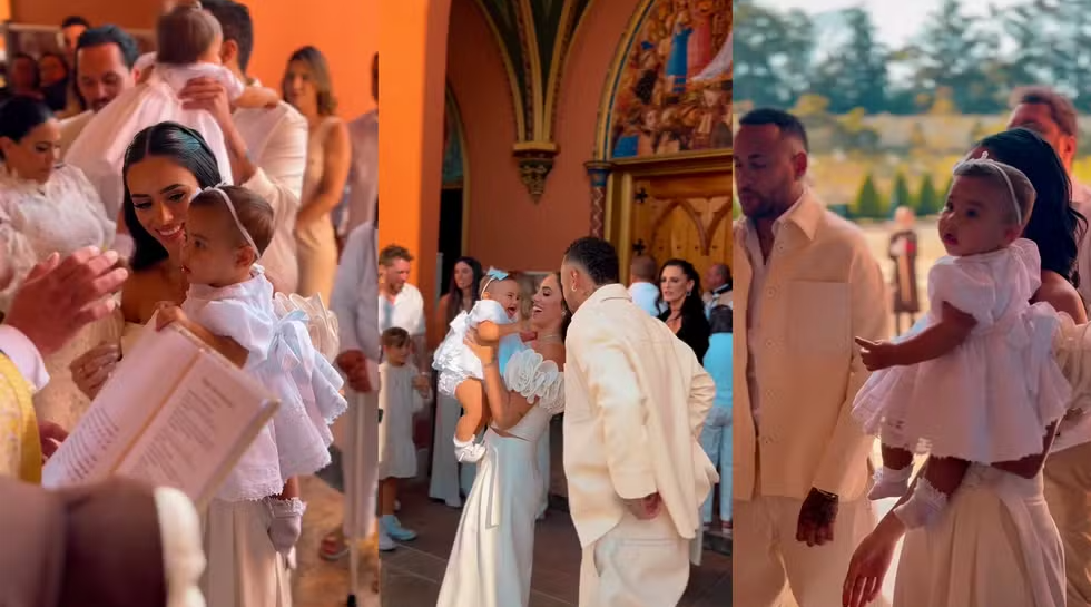 Neymar Jr. e Bruna Biancardi compartilharam no fim de semana alguns registros do batizado da filha Mavie, de oito meses. Ela recebeu o sacramento e foi acolhida no seio da Igreja Católica. Confira!