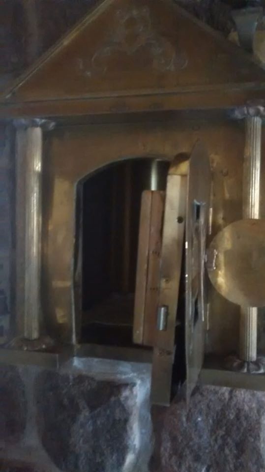 O reitor do Santuário, Pe. José Alberto Alfonso, preparava sua reflexão diária do Evangelho, perto do meio-dia, quando tudo aconteceu. Alguém entrou na igreja, forçou o sacrário e levou duas âmbulas contendo hóstias consagradas! Além da hóstia maior, que era exposta na Adoração Eucarística.