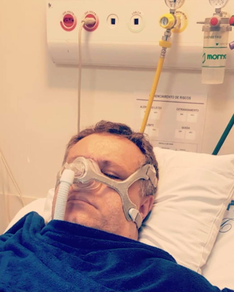 A legenda diz: “Ontem à noite ele foi internado às pressas em São José dos Campos. Está aguardando uma vaga na UTI. Ele teve um agravamento da sua doença rara neurodegenerativa: Deficiência do Transportador de Riboflavina, a RTD“.