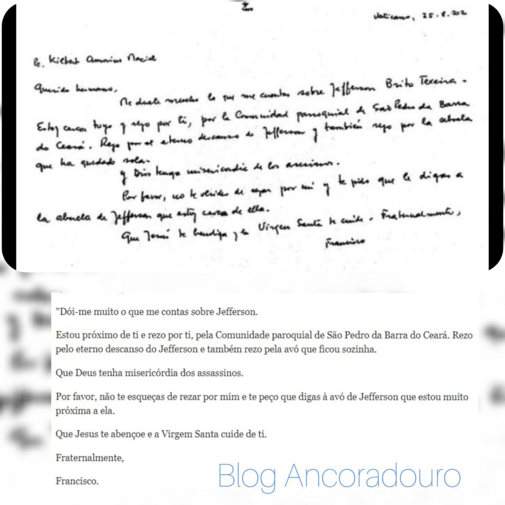 O Papa Francisco escreveu uma carta lamentando a morte de Jefferson de Brito, um menino de 14 anos assassinado em Fortaleza, no Ceará. Ele servia como coroinha na Paróquia São Pedro.